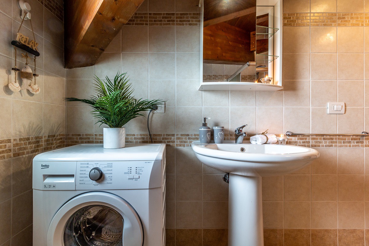 Il bagno, rinnovato con attenzione alle scelte di spazio e praticità, vede attualmente la doccia protagonista assoluta con una grande cabina a vetro che racchiude un ampio piatto doccia a filo pavimento e soffione a risparmio idrico. Troverete il lavandino, il wc, il bidet e la lavatrice. Il bagno è equipaggiato con phon e set di cortesia.